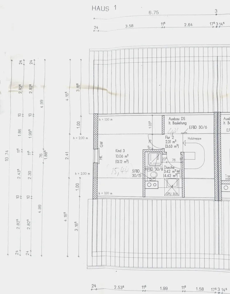 Dachspitz: Zimmer sowie ein Bad mit Dusche