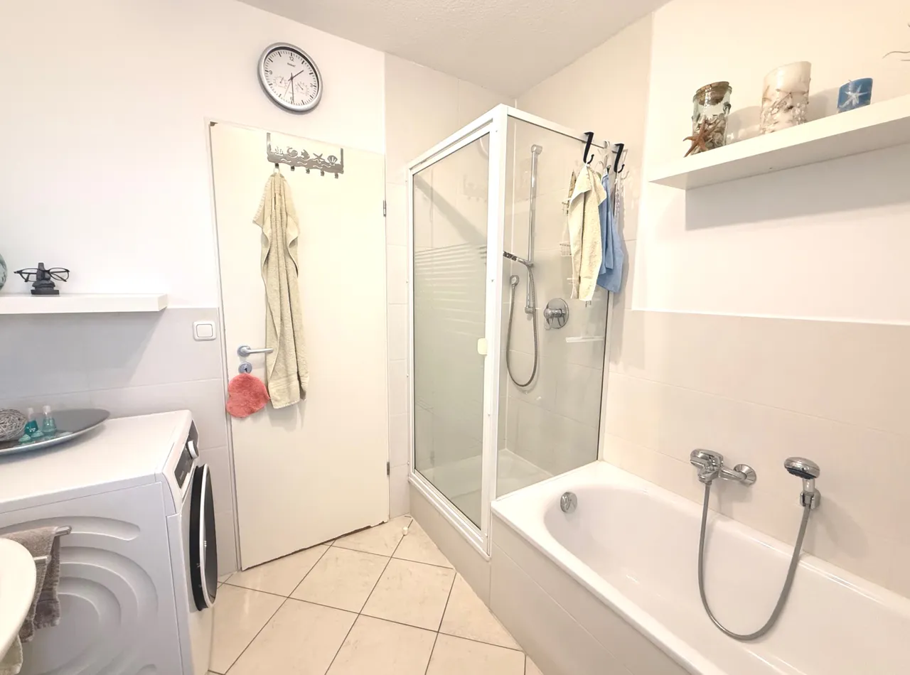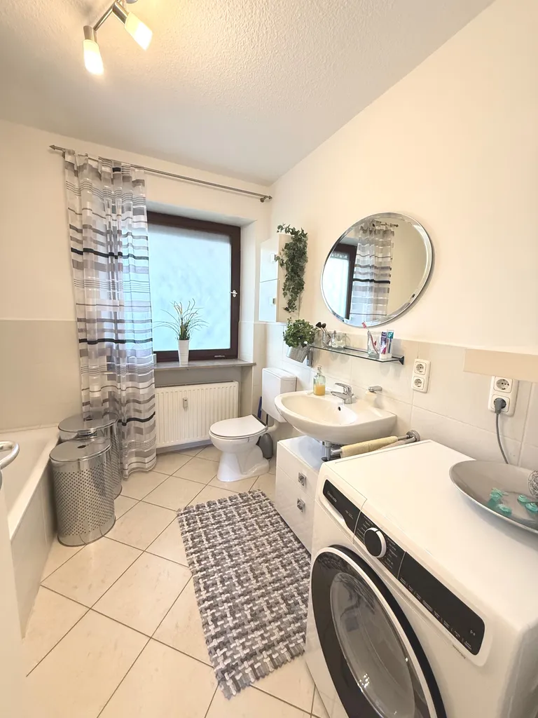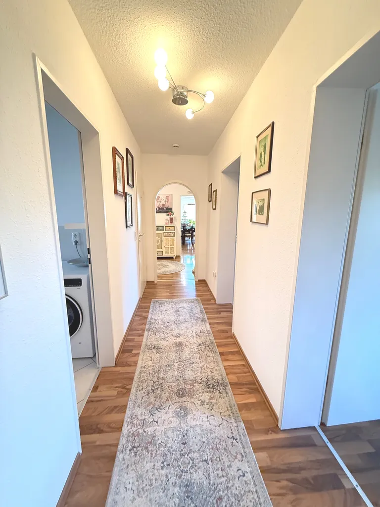 Gleiches gilt besonders auch für die angebotene Wohnung, welche sich in einem guten und gepflegten Gesamtzustand befindet. Dies betrifft u.a. die Böden (Fliesen oder Laminat) oder auch das sanierte Bad und Gäste-WC.