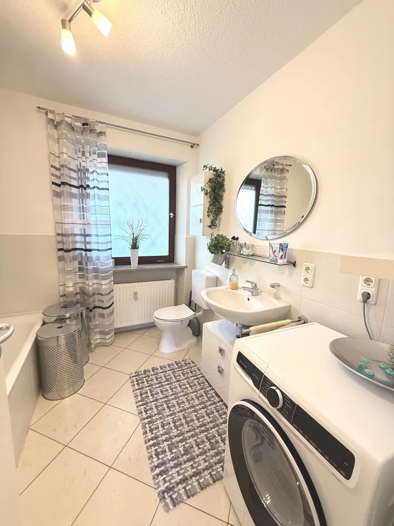 Gleiches gilt besonders auch für die angebotene Wohnung, welche sich in einem guten und gepflegten Gesamtzustand befindet. Dies betrifft u.a. die Böden (Fliesen oder Laminat) oder auch das sanierte Bad und Gäste-WC.