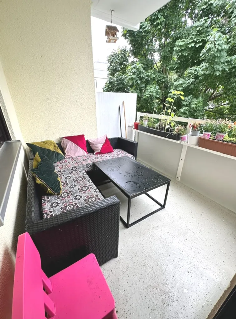 Erwähnenswert ist, das die Wohnlage einerseits relativ ruhig und grün ist, aber z.B. die Straßenbahnhaltestelle nur ca. 100 m entfernt ist. Im nahen näheren Umfeld gibt es Geschäfte aller Art, und auch Ärzte, Apotheke usw.. Gleiches gilt für die Schule und/oder Kindergärten etc.