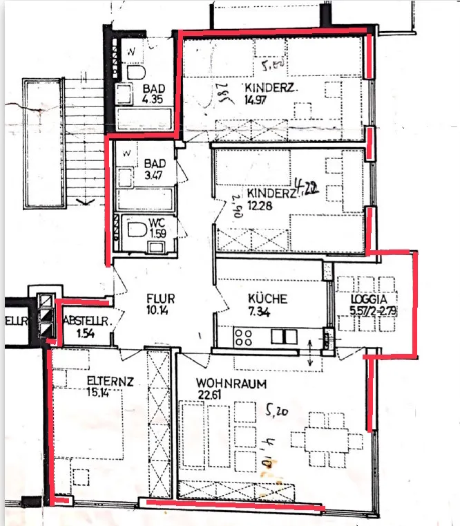 Die Wohnung selbst befindest ich im 1. OG und hat folgende Raumaufteilung