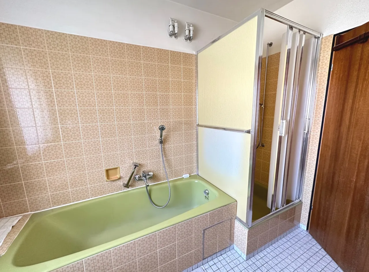 | Bad mit Dusche, Wanne, Fenster |